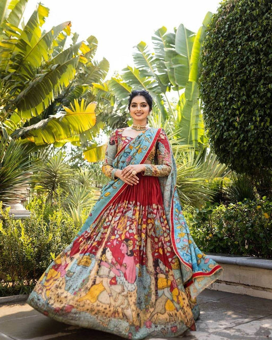 Kalamkari Lehenga Choli - Light Shades, Premium Fabric, Stunning Look