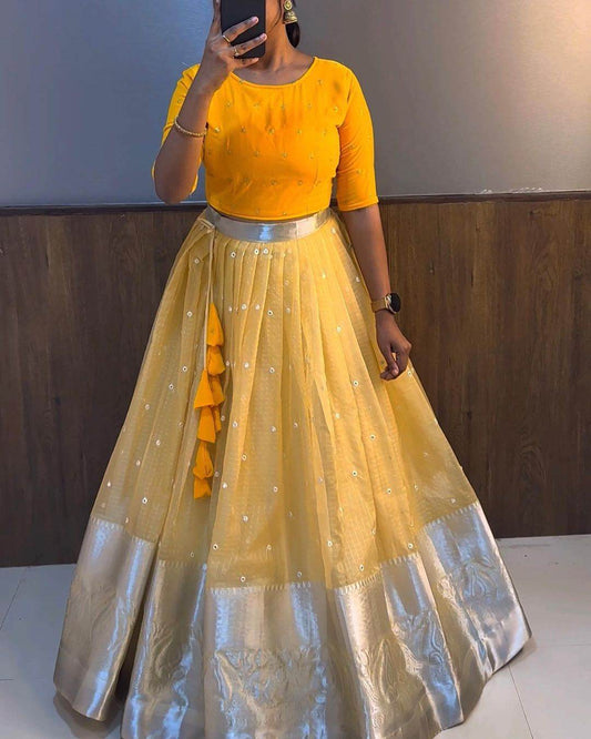 Yellow Velvet Designer Lehenga Choli – Perfect for All Occasions