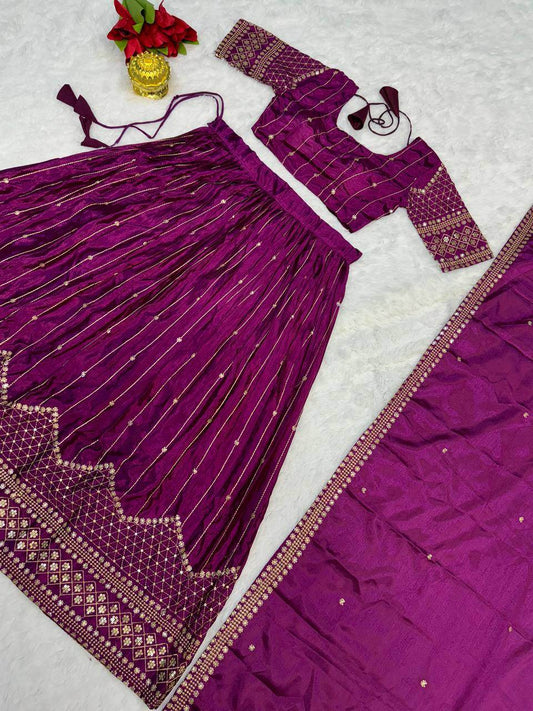 Designer Chinon Embroidered Lehenga Choli with Dupatta | Fully Stitched