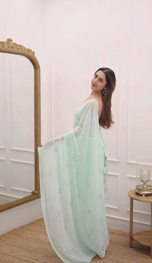 Handwork Kumud Beads Saree - Soft Georgette Fabric with Running Blouse Cut (6.3 Meters) | Lightweight 300 Grams Saree for Women