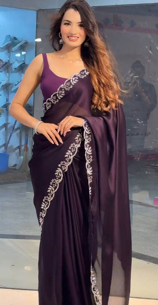 Style Rich Party Wear Saree for Women - Black Ramgoli Rich Soft Shine Fabric with Handmade Diamond Panel Work & Matching Running Blouse